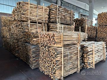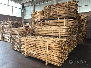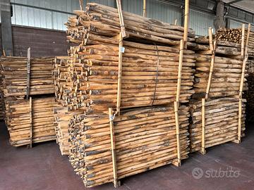 Pali in castagno scortecciato per recinzioni, staccionate, contenimento terra.