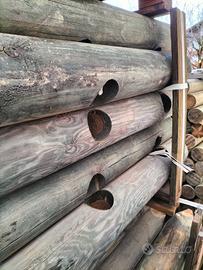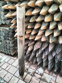 Pali torniti ed impregnati in autoclave classe 3, col sistema del doppio vuoto, tramite impregnanti ecologici che proteggono in profondità il legno dall'azione di parassiti, funghi, muffe, batteri ecc. nel più totale rispetto della salute.