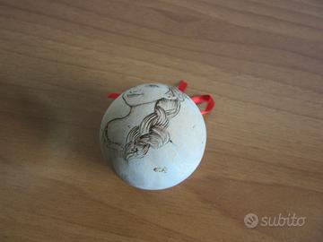 Vendo pallina di legno natalizia da appendere all'albero di Natale con nastrino rosso e personalizzazione Elsa di Frozen. Fatta a mano.