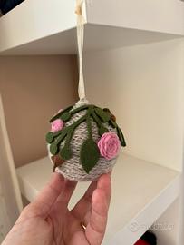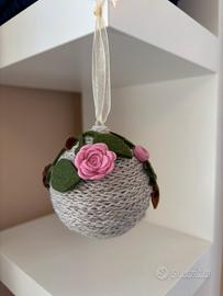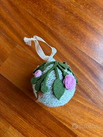 Pallina natalizia con decirazioni floreali in lana e pannolenci, fatta a mano.
