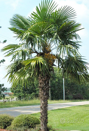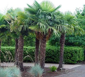 Coltivatore diretto vende palme Trachicarpus Fortunei dette anche Chamaerops Excelsa per liberare il campo, ultimi esemplari. Si tratta delle palme resistenti alle gelate (fino -18 C°) e non attaccate dal punteruolo rosso con la chioma a ventaglio e il tronco fibroso. In assoluto la pianta sempreverde che sporca di meno, non perde foglie e si pota in soli 5 minuti! Ogni anno emette 6 nuove foglie e si potano le 6 più vecchie. Ideali per giardino e bordo piscina. Si tratta di piante in zolla, attecchimento garantito! Il prezzo? andate in un garden e vedete il prezzo, io applicherò il 70% di sconto! (prezzo a cm di altezza). Se interessati posso fare le foto alle singole piante in base alle Vostre esigenze.