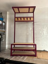 Vendo Appendi Abiti con panca scarpiera, realizzato in ferro verniciato a polvere colore RAL 4004 e legno listellare di rovere.