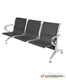 Panca per sala attesa 3 posti in acciaio Nero