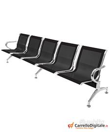 Panca per sala attesa 5 posti in acciaio Nero