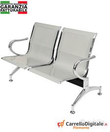 Panca per sala dattesa, ufficio, studio, scuola a due posti in acciaio