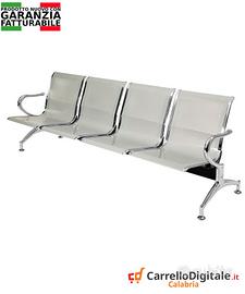 Panca per sala dattesa, ufficio, studio, scuola a quattro posti in acciaio