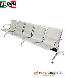 Panca per sala dattesa, ufficio, studio, scuola a cinque posti in acciaio