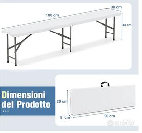 COSTWAY Panca Pieghevole in Plastica 180 cm, Sedile Portatile con Manico e Blocco, Panca da Campeggio in HDPE Rinforzato, per Giardino Campeggio Picnic, Portata 300 kg (Bianco)