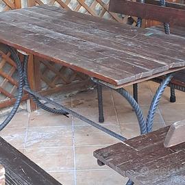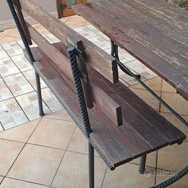 Panche in ferro e legno per uso ristorazione e giardino. Si tratta di numero 5 panche e di numero 10 seduta. Capacità di seduta 30 persone.