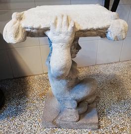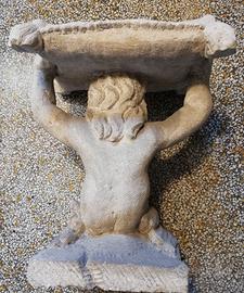 Scultura rappresentante una sirena che sorregge un cuscino festonato.