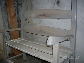 panchina in noce nazionale legno massello costruita artigianalmente. la seduta è in pino per effetto doghe.