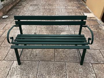 Vendo elegante panchina da esterno in ferro verniciato di colore verde scuro, ideale per giardini, balconi o spazi pubblici.