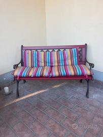 bellissima panchina molto robusta, dimensioni: larghezza 120cm x profondità 60cm x altezza 60 cm (altezza con schienale 80cm) con cuscini di design