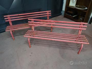 Panchine per bambini in ferro anni '70 con vernice originale con segni del tempo.