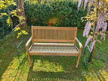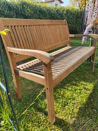 Panchina in legno massiccio L120xP55xH90. 45 cm alla seduta. 90 allo schienale. In ottimo stato strutturale. Necessita di una semplice carteggiata.