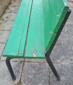 Panchina in legno verde. Gambe resistenti in ferro trattato nero. Misure Lunghezza 125 cm Altezza 64 cn Profondità 41 cm Profondità della seduta 25 cm Prezzo non trattabile