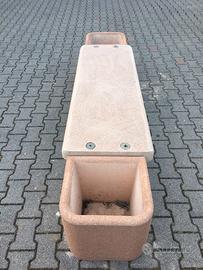 Panchina per arredo urbano e privato, studiata per resistere ad eventuali atti vandalici o urti casuali, l'elemento seduta, è stato trattato con prodotti antimacchia e idrorepellenti garantendo una superficie lucida e facilmente lavabile, capacita' fioriera 45 l, dimensioni cm Largh 230, Prof. 55, altezza 45, peso kg 430, finitura levigata colore rosa, disponibili nr 2 pz, prezzo riferito al singolo pezzo ed escluso da Iva di legge, promozione per rinnovo magazzino, visibili in sede previo appuntamento telefonico o messaggio.