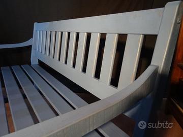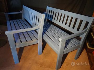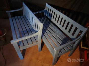 Coppia di panchine in legno restaurate. Misure: 134 X 51 X h.81 cm h.seduta: 41 cm