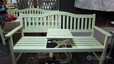 Vendo panchine in legno tête â tête Colore verde chiaro come da foto Il tavolino centrale si alza e si abbassa Può essere 2 posti e 3 posti. Vendo per inutilizzo Stato buono praticamente nuove Vendo preferibilmente entrambe a 100 euro vero affare 50 euro una No perditempo contattatemi se veramente interessati Al 3807076371