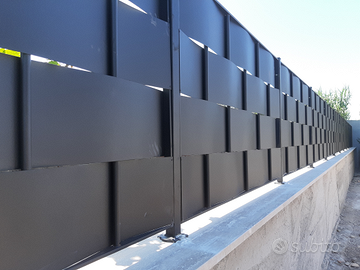 Recinzione oscurante interamente in ferro tutto zincato a caldo a 85 euro mtl compresa verniciatura e comprensivo di colonna possibilità di altri modelli a partire da 30 euro mtl possibilità di spedizione .