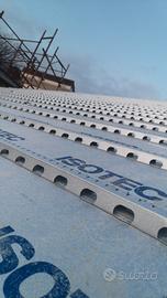 Vendo per rimanenza cantiere 2025, n°38 pannelli isotec tetto ventilato. Dettagli: spessore pannello 80mm; lunghezza 3,90m; passo 32cm; totale metratura 45mq.