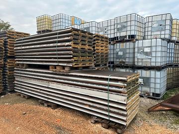 Lotto di occasione di pannelli di terza scelta usati da copertura sp 40 mm coibentati in poliuretano con lamiera superiore in acciaio 5/10 bianco grigio e lato inferiore in cartonfeltro larghezza 1000 mm