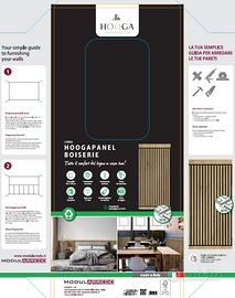 Il pannello decorativo Boiserie è un prodotto made in Italy realizzato in MDF certificato FSC e CARB e rivestito in laminato. Il pannello di misura 50x118cm grazie al suo formato ed essendo completo di profilo superiore e battiscopa inferiore è particolarmente indicato per il rivestimento di pareti a mezza altezza e per la realizzazione di testiere letto. Il prodotto è costituito da listelli larghi 17 mm e distanziati tra loro da 0.4 mm che gli conferiscono un aspetto moderno e confortevole. Nella colorazione rovere. Per la posa si consiglia l'utilizzo del mastice di fissaggio 300ml e/o delle viti. Per il fissaggio a parete è consigliato 1 tubo 300 ml ogni 3 pannelli o 6 viti per pannello.