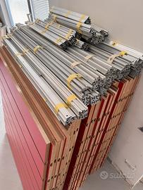 Vendesi 111 pannelli dogati (sistema Slatwall) per esposizione a muro, ideali per allestimenti professionali di negozi, showroom, stand fieristici e spazi commerciali.
