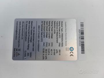 Vendo per avanzo di un lavoro pannelli FV 550W mai usati. Hanno solo un po' di polvere essendo appoggiati fuori all'aperto.Misure 228x113. Produzione 2023. Prezzo riferito a singolo pezzo. Non spedisco.