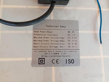 Pannelli fotovoltaici in blocco totale di sei pezzi.potenza 10 w 18v.