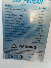 Sedici (16) pannelli fotovoltaici 250W per un totale di 3500w (copre fabbisogno di una abitazione) ; 9anni di vita , funzionamento stimato ancora per 15 anni. Vendo in unico lotto a 600 euro, con ritiro in loco NON spedisco.