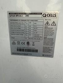 Vendo n. 9 moduli fotovoltaici marca Q.Cells modello Q.PLUS BFR-G4.1 da 280W. Caratteristiche principali: Potenza nominale: 280 W Tensione a vuoto (Voc): 38,97 V Tensione a massima potenza (Vmp): 31,67 V Corrente (Imp): 8,84 A Sistema max: 1000 V I pannelli sono usati ma funzionanti, smontati da impianto del 2018, sono stati utilizzati per soli 2 anni poi rimossi per cambio impianto. Ideali per: piccoli impianti fotovoltaici o implementazione di un impianto esistente. sistemi off-grid utilizzi agricoli o fai-da-te Condizioni: normali segni d’uso, nessuna rottura vetro. Vendita in blocco. Consegna a mano in sona Portogruaro/Pordenone. Per zone più lontante ci si mette d’accordo.