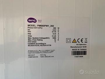 9 Pannelli fotovoltaici da 260 watt in ottime condizioni pari al nuovo . 25 euro cadauno anche singolarmente. Misure 164x99x4 Tel 3486818342