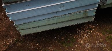 Pannelli coibentati isolanti per costruzione tetti o garage o parete, varie misure da 4,80 mt lunghezza e, 120 cm larghezza, spessore 10 cm. 40 euro al pezzo