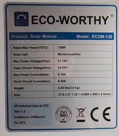 Vendo 2 Pannelli Solari Monocristallino Flessibile 130W 12V Eco-worthy leggeri adatti per camper, barche e ringhiere balconi o terrazzi. Perfettamente funzionanti in ottimo condizioni.