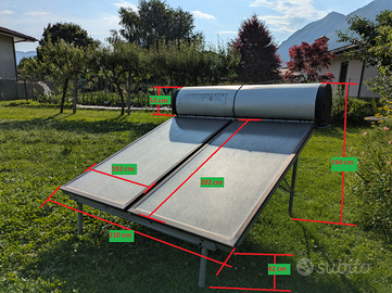 I pannelli sono dotati di solida struttura in acciaio per rendere possibile il montaggio sopra il colmo ad esempio nelle case con le due falde esposte est/ovest e di accumulo da 95L da montare all'interno.