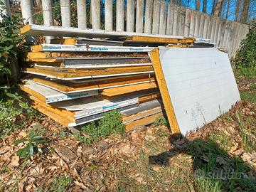 Pannelli Lattonedil per uso pareti o coperture, disponibili vari pezzi. Misure: L525cm x P100 Sp55mm Disponibili 3 pezzi di cui 1 con taglio vedi foto. Altri pannelli sciolti più piccoli varie misure. Pannelli lunghi € 120 tutti e 3 Pannelli più piccoli e vari € 5 cadauno. X info scrivete.