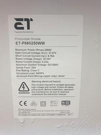 vendo pannelli fotovoltaici 250w gia smontati per trasferimento in condominio possedevo l'impianto da 5kw quindi ad ora ne ho: 21