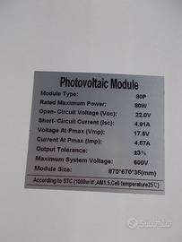 nominalmente da 80W all'origine è stato utilizzato per parecchi anni nell'impianto domestico, ora rimosso perché degradato fornisce normalmente 40-45 watt senza particolare cura nell'esposizione ecc...