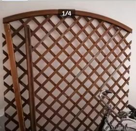 Pannello grigliato in legno, spesso chiamato anche traliccio per piante rampicanti. Questi pannelli sono elementi d'arredo per esterni molto versatili, utilizzati principalmente per: Supporto per la vegetazione: piante come rose, gelsomini o edera possono arrampicarsi sulla trama a rombi. Privacy e divisione: fungono da schermi frangivista per creare angoli riservati in giardino o sul balcone. Decorazione: aggiungono un tocco estetico naturale a pareti nude o recinzioni. Misure: - Lunghezza cm 150 - Altezza lato cm. 170, punto centrale curvatura cm. 180.