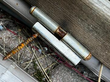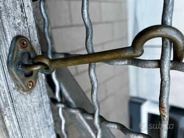 Vendo Pannello in legno di pino impregnato grigliato/traliccio ad arco, 120x180 cm. Noi l'abbiamo usato come porta, per cui sono montate cerniere e gancio per chiusura (incluse), vedi foto. Scheda Tecnica Peso Kg: 9 Altezza: 180 cm Larghezza: 120 cm Profondità: 4 cm