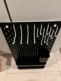 Vendo pannello porta attrezzi sia da garage o da cucina…nuovo mai usato…completo per fissaggio a muro…lo vendo con vari accessori come da foto!