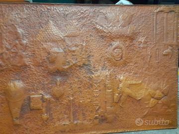 Pannello sbalzato a mano su l'asta in rame cm.100x50.