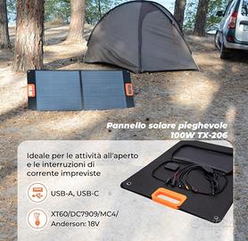 Ampia compatibilità: Dotato di 1 uscita USB-A (QC3.0), 1 uscita USB-C (PD) e uscite XT60 / MC4 / Anderson / DC7909. Ciò rende il dispositivo versatile e compatibile con tutte le centrali di alimentazione comuni disponibili sul mercato, comprese le nostre stazioni di alimentazione TX-201&202;