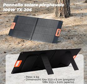 Pieghevole e portatile: Il set del pannello solare è dotato di un design pieghevole. Le sue dimensioni sono di 64 x 53,5 x 5 cm (piegato) e il peso è di 4 kg, rendendolo facile da trasportare, montare e portare con sé. Il set dispone anche di una maniglia per il trasporto agevole e di una tasca per i cavi;