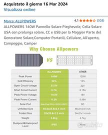 ▶ Contenuto della confezione: caricabatterie solare pieghevole AllPowers da 140 W, cavo di prolunga solare fino a 5,5 x 2,1 mm, cavo di prolunga solare a morsetto a coccodrillo, 5 porte per computer portatili e centrali, istruzioni (lingua italiana non garantita).