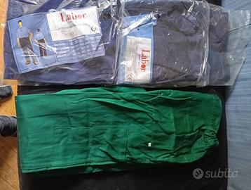 Pantaloni da lavoro Labor, taglia L, 52-54, cotone 100% fibra naturale, rimasti 3 paia blue, 1 verde, euro 10 cadauno, ritiro milano zona san siro