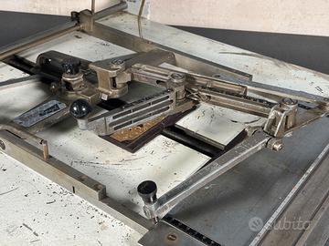 Vendo stazione pantografica Gravograph K2 con base allungata (fino a 60cm), ideale per incisione di targhe e placche di medio–grandi dimensioni. Dotato di mandrino motorizzato 70W (230V), bracci articolati con scale graduate, tavola scorrevole e staffe regolabili.