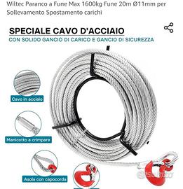 Vendo per errato acquisto paranco a fune da 1.6t (tonnellate) , con corda in acciaio da 20 metri per un diametro di 11 mm e gancio di sicurezza. Manifattura tedesca.
