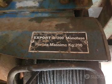 Paranco elettrico professionale IMER Export B-200 – Portata 200kg - 220V Vendo elevatore elettrico professionale a fune marca IMER, modello Export B-200, ideale per cantieri edili, traslochi o lavori di fai da te pesante. Caratteristiche principali: Modello: Export B-200 (Alta affidabilità professionale). Alimentazione: Monofase 220V (funziona con la normale presa di casa). Portata massima: 200 kg. Stato: Usato, perfettamente funzionante. La struttura presenta i normali segni di usura da cantiere che non ne compromettono l'utilizzo. L'attrezzatura è robusta e pronta all'uso. Ottimo per sollevare secchi di malta, mattoni, piastrelle o altro materiale pesante in totale sicurezza. Si accettano offerte !!! --> Guarda anche gli altri articoli che ho in vendita <-- Per maggiori informazioni scrivetemi qui o su Whatsapp al numero 3773102676